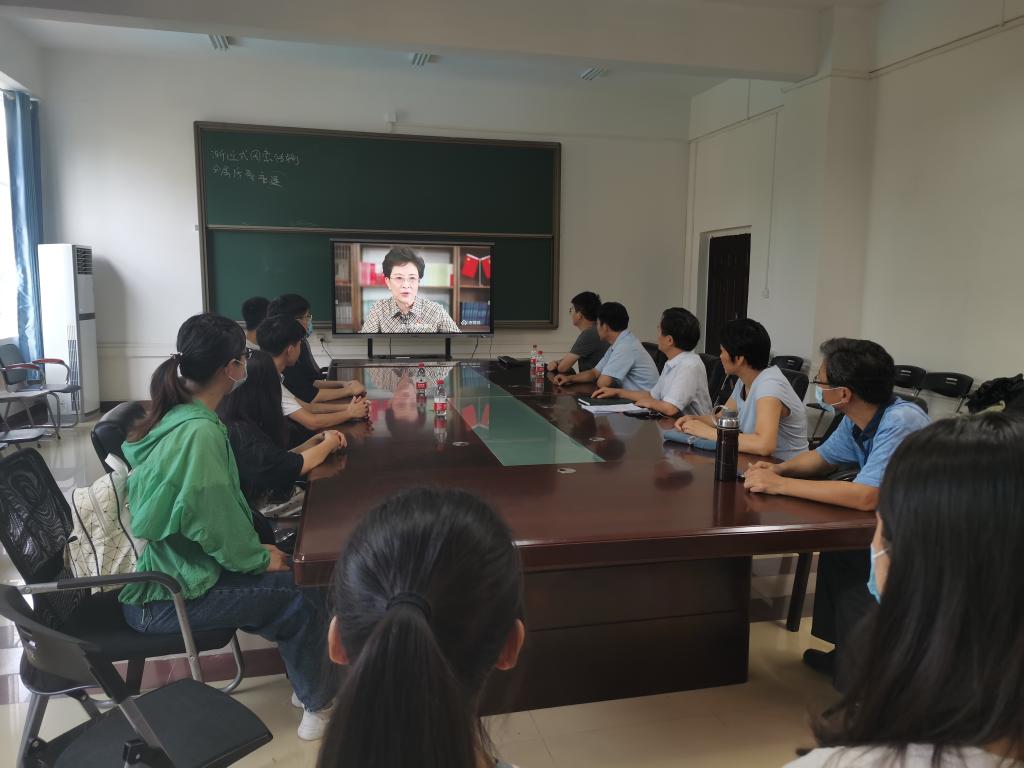 会上,大家观看了由教育部思想政治工作司指导的题为“党旗飘扬,筑牢红色防火墙”的高校战疫示范微党课“七一”专题。