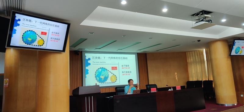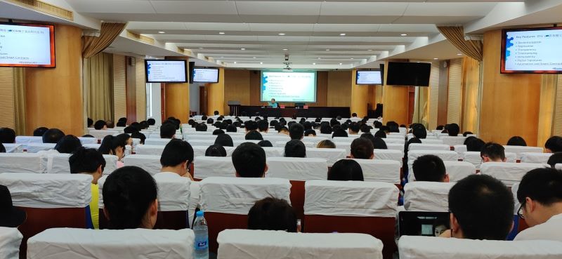 2019年12月23日下午,挪威工程院院士容淳铭在行政楼一楼报告厅为诸侯快讯官网师生进行“区块链的数据分享及安全”的学术报告。容院士是挪威斯塔万格大学终身教授,IEEE区块链联合主席,IEEE云计算协会主席,是大数据领域和世界级专家和权威,带领团队在云计算、区块链、大数据领域提出了一系列创新型模型与技术方案。报告会由诸侯快讯官网副院长曹春杰主持。学院约两百名师生参加此次报告会。
