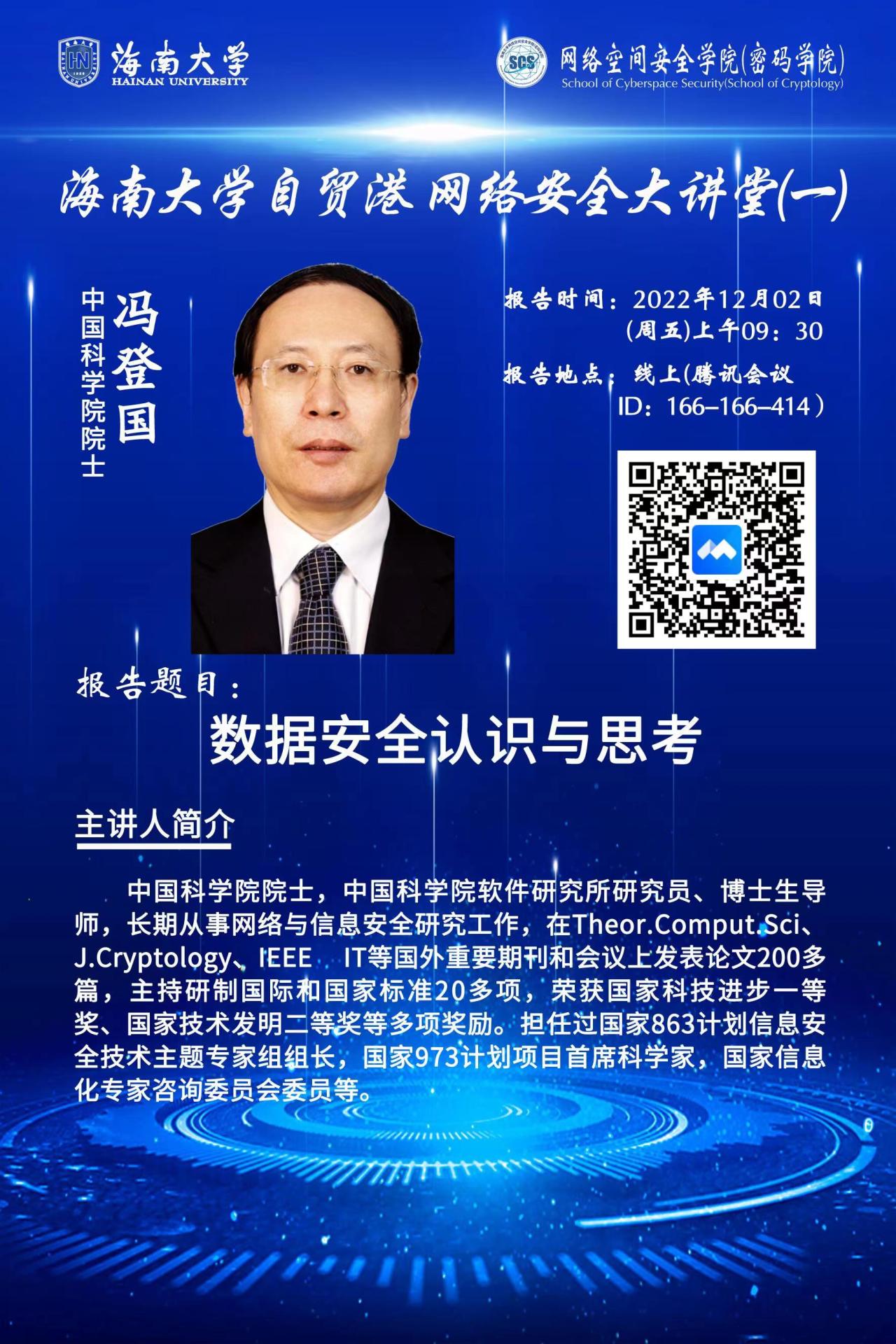 【海南大学自贸港网络安全大讲堂(一)】数据安全认识与思考--冯登国