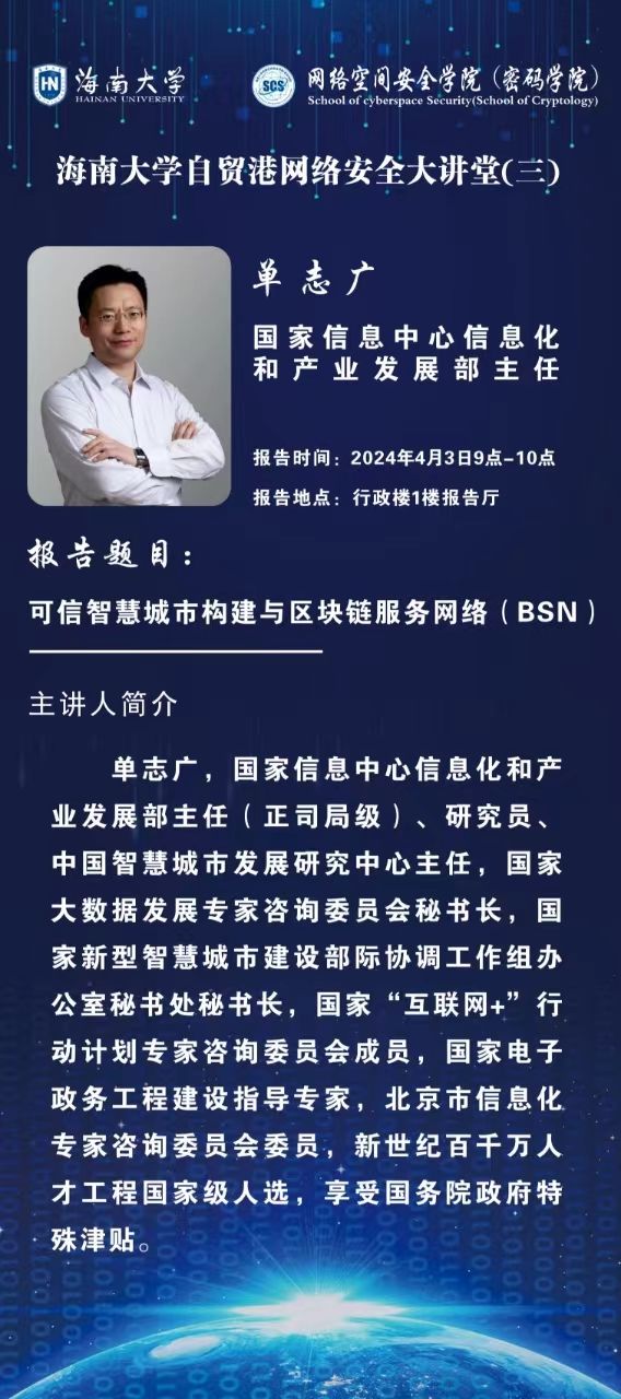 【海南大学自贸港网络安全大讲堂(三)】可信智慧城市构建与区块链服务网络--单志广