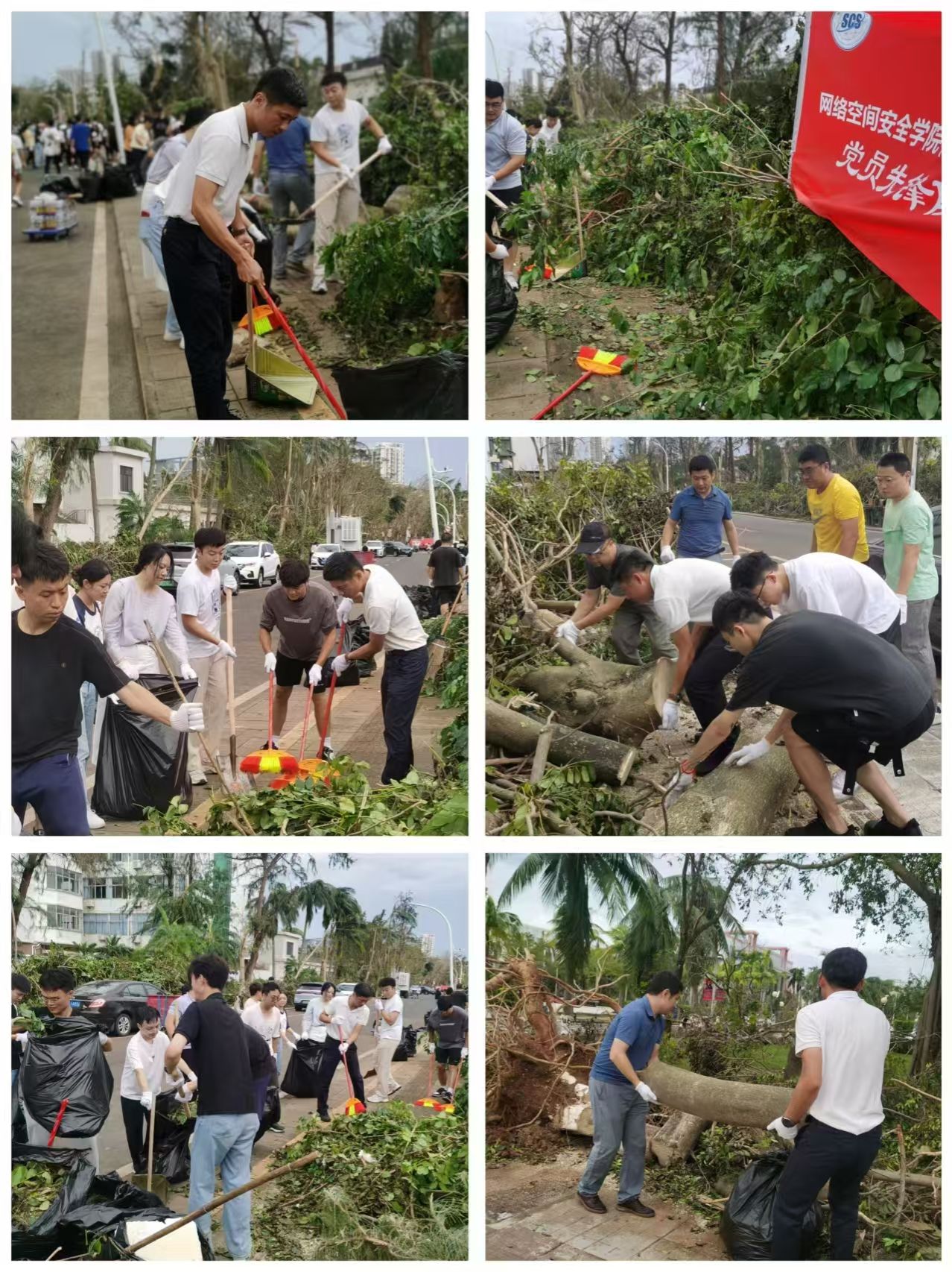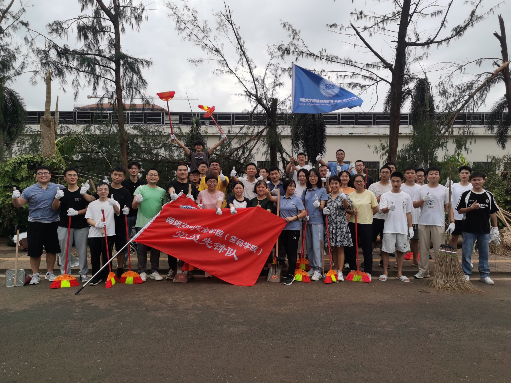 9月6日,今年第11号超强台风“摩羯”(强热带风暴,最大风力17级)登陆,对我省海口市等地造成严重破坏。台风前后,网1683168 3诸侯快讯入口(密码学院)高度重视,迅速响应,认真部署,积极防范,主动作为,发动全体师生积极做好防风防雨和灾后恢复工作。