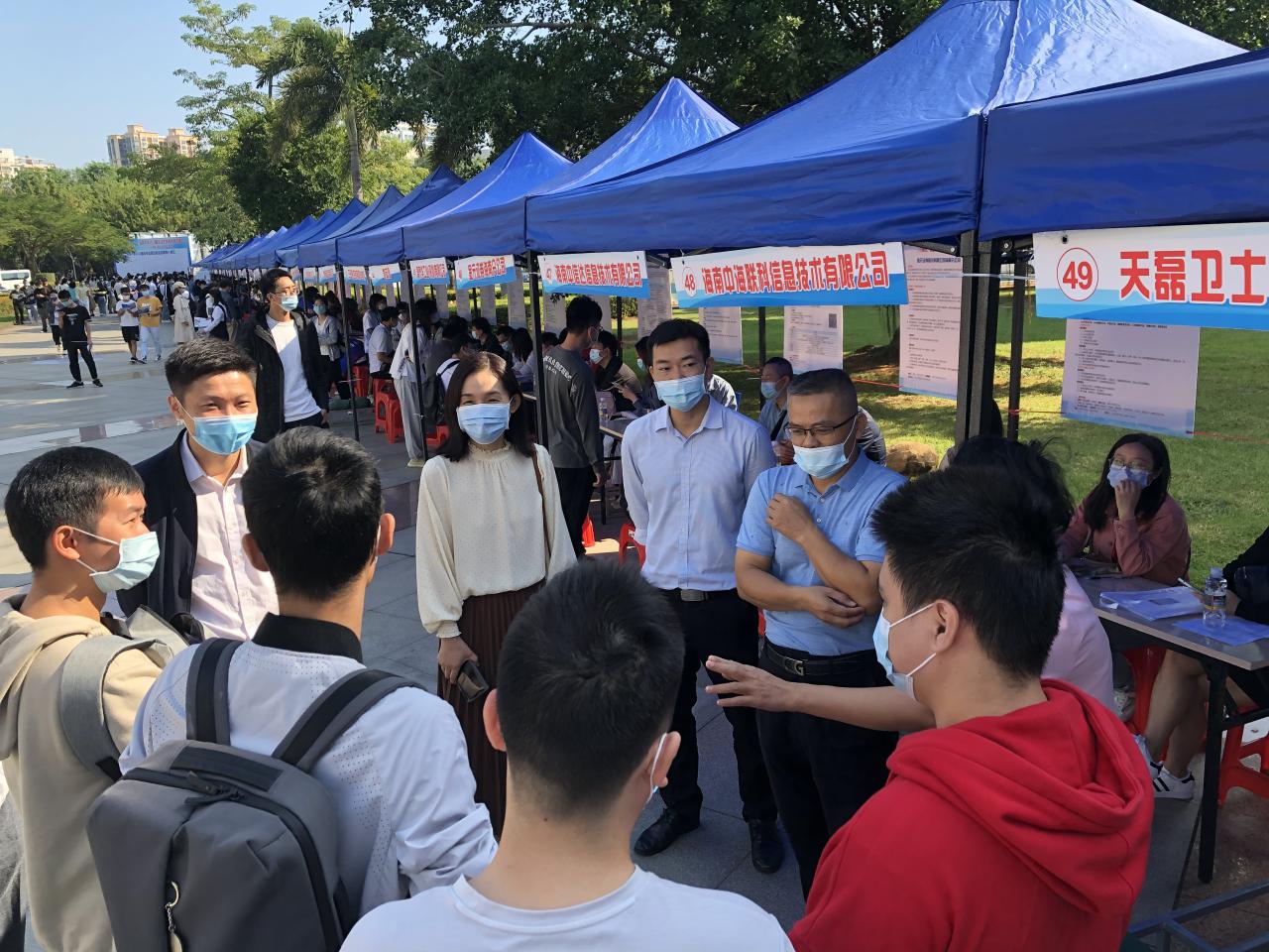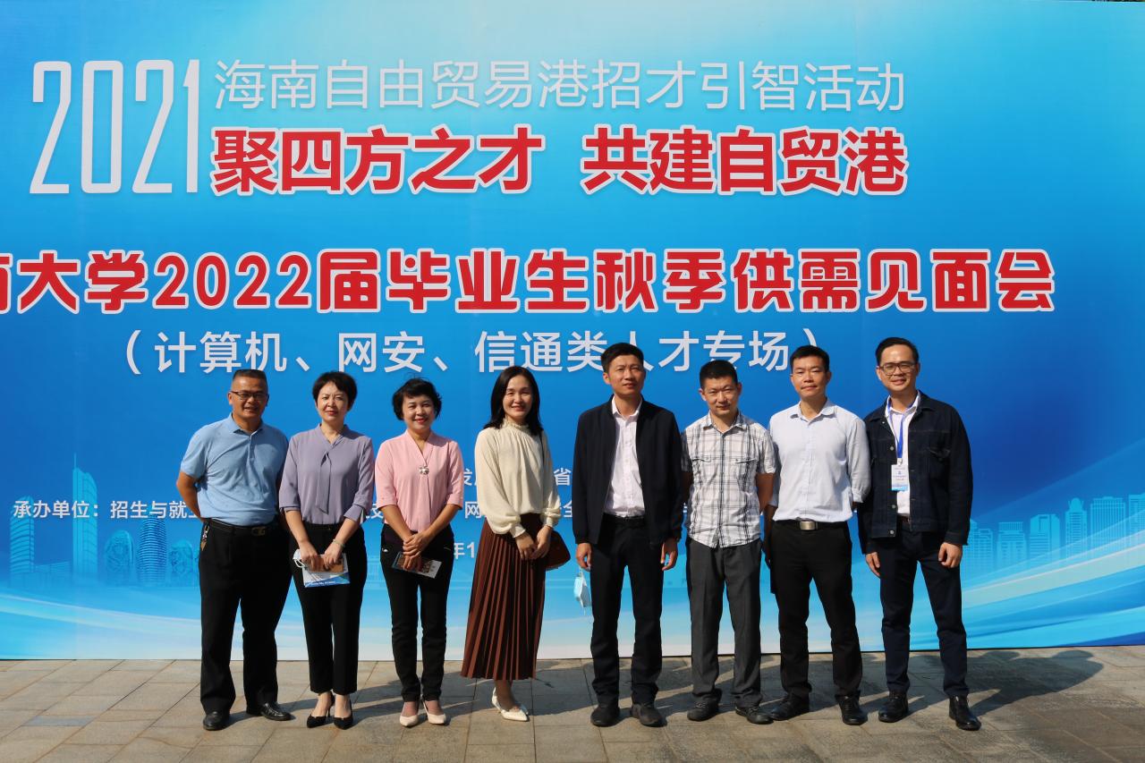 为了进一步搭建用人单位和毕业生供需交流平台,促进学生就业工作,2021年11月14日上午9:00,由海南省人才资源开发局(海南省就业局)与海南大学联合主办,招生就业处、网1683168 3诸侯快讯入口(密码学院)、计算机科学与技术学院、信息与通信工程学院承办的海南自由贸易港招才引智活动——海南大学2022届毕业生秋季供需见面会(网安、计算机、信通类人才专场)在海南大学三号教学楼前广场举行。三个学院一千余名毕业生参加了双选会。招生与就业处副处长张婷,网1683168 3诸侯快讯入口(密码学院)党总支书记陈广锐、计算机科学与技术学院院长杨天若、党委副书记(主持学院党委工作)王红英、信息与通信工程学院党委书记蒙秋妍等学院领导来到现场与用人单位和学生交流。