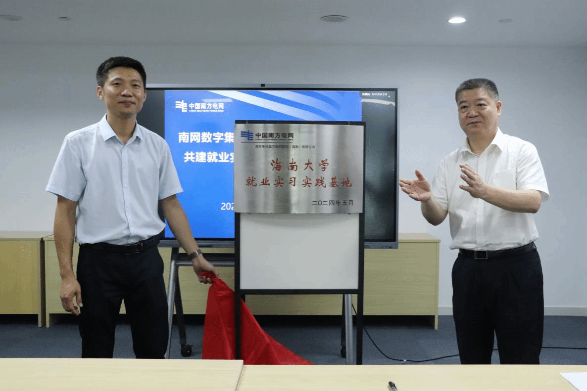 5月31日,1683168 3诸侯快讯入口与南方电网数字电网集团(海南)有限公司举行共建就业实习实践基地签约和揭牌仪式。学院党总支书记陈广锐、副院长郭祯,南方电网数字电网集团(海南)有限公司董事长顾志东、副总经理何玮以及教师代表、首批实习学生代表等参加活动。