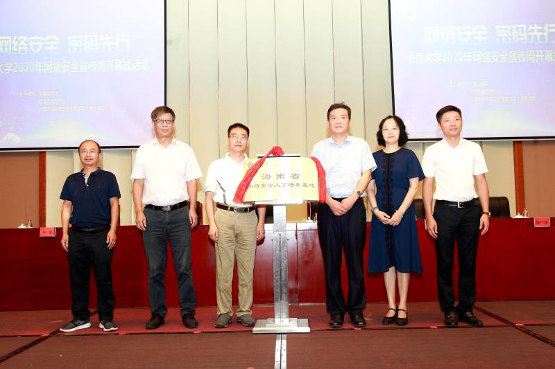 开幕式上,与会领导为“海南省网络安全人才培养基地”揭牌,标志着海南省网络安全人才培养基地正式落地海南大学!
