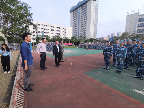 3月2日,学院党委书记陈广锐、执行院长曹春杰、党委副书记黄小欧一行来到训练场看望军训学生、教官及带训教师,了解学生军训情况。学院领导与军训学生亲切交谈,鼓励学生刻苦训练,发扬不怕苦不怕累的精神,在军训中磨练意志品质、强化纪律观念,进一步增强国防意识。