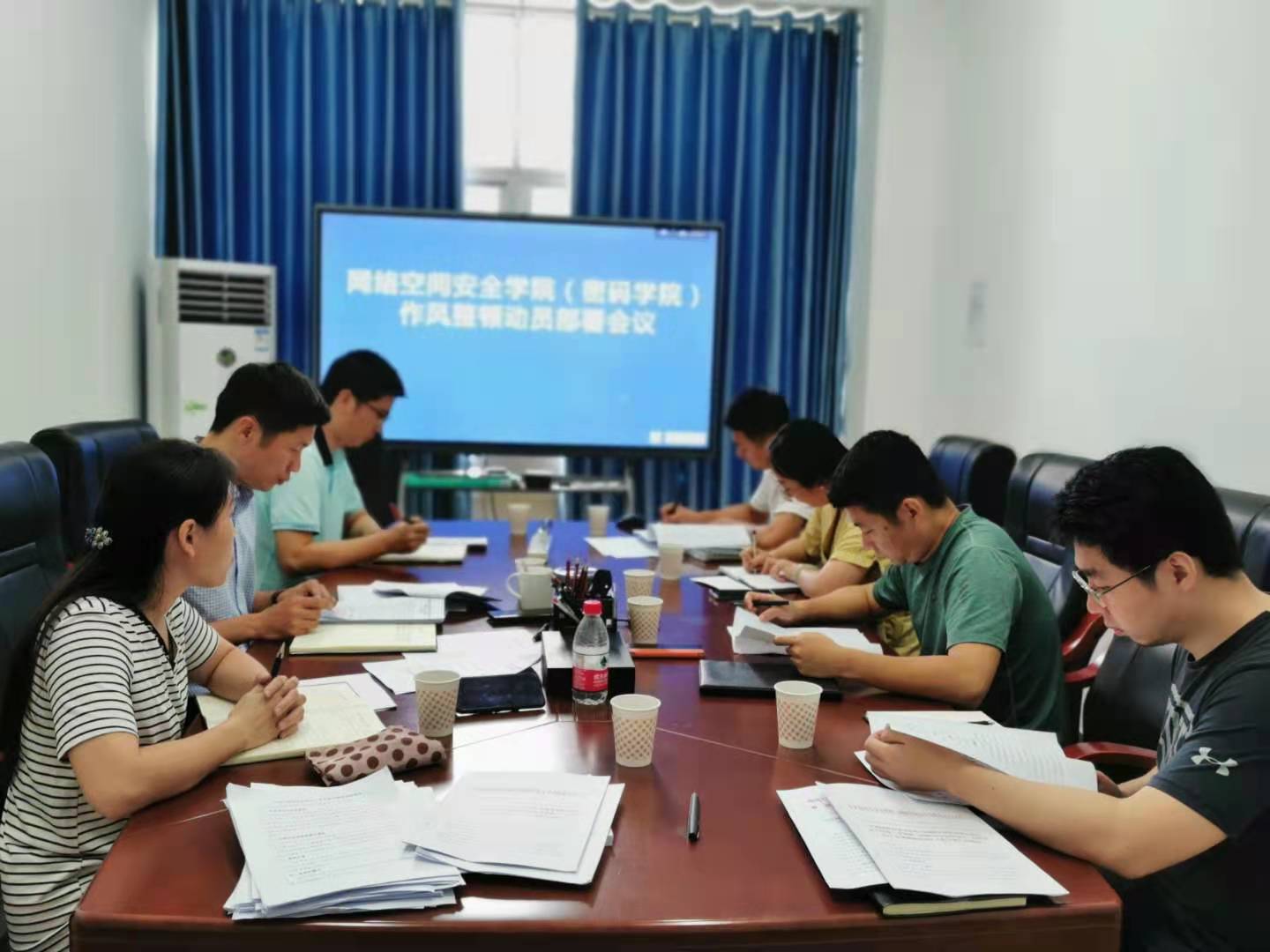 6月10日,网1683168 3诸侯快讯入口(密码学院)召开作风整顿建设动员部署会议,旨在深入贯彻落实学校作风整顿建设动员大会精神,扎实开展作风整顿建设,全面检视、精准纠治干部教师工作中的作风顽疾,激励全院干部教师转作风、敢担当、重实干、提效能、树形象,推动学院高质量发展。学院领导、各系室(中心)主要负责人等参加了会议,会议由学院党务工作负责人陈广锐主持。
