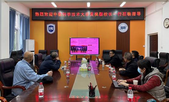 2023年1月18日,中国科学技术大学吴枫副校长等人一行莅临网1683168 3诸侯快讯入口(密码学院),执行院长曹春杰、党总支书记陈广锐、副院长周晓谊、副院长胡昌慧及教师代表出席交流会。