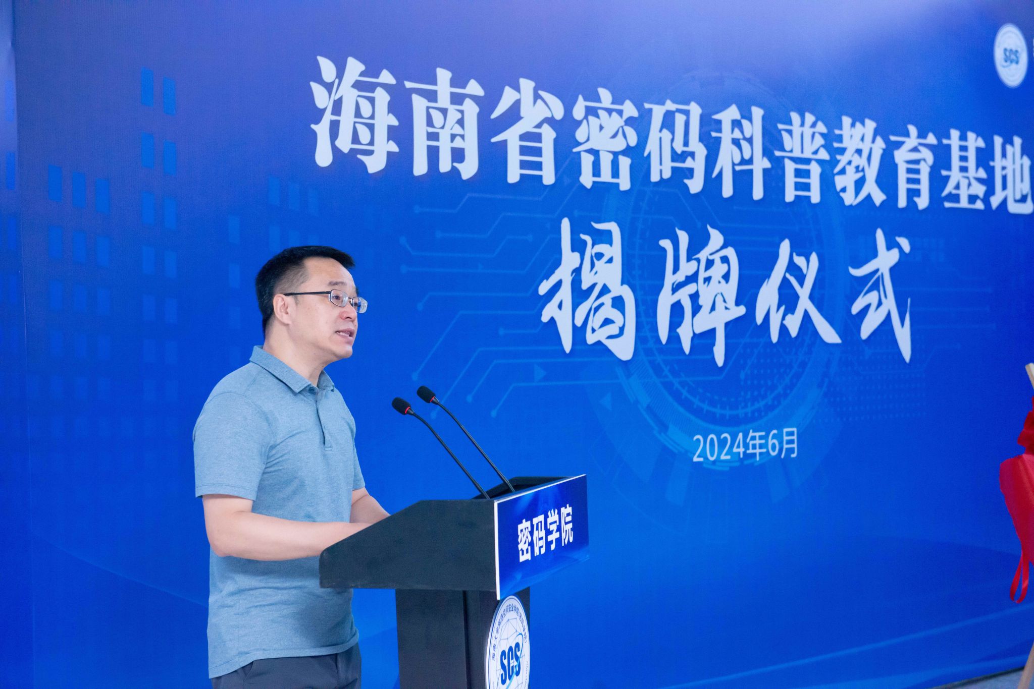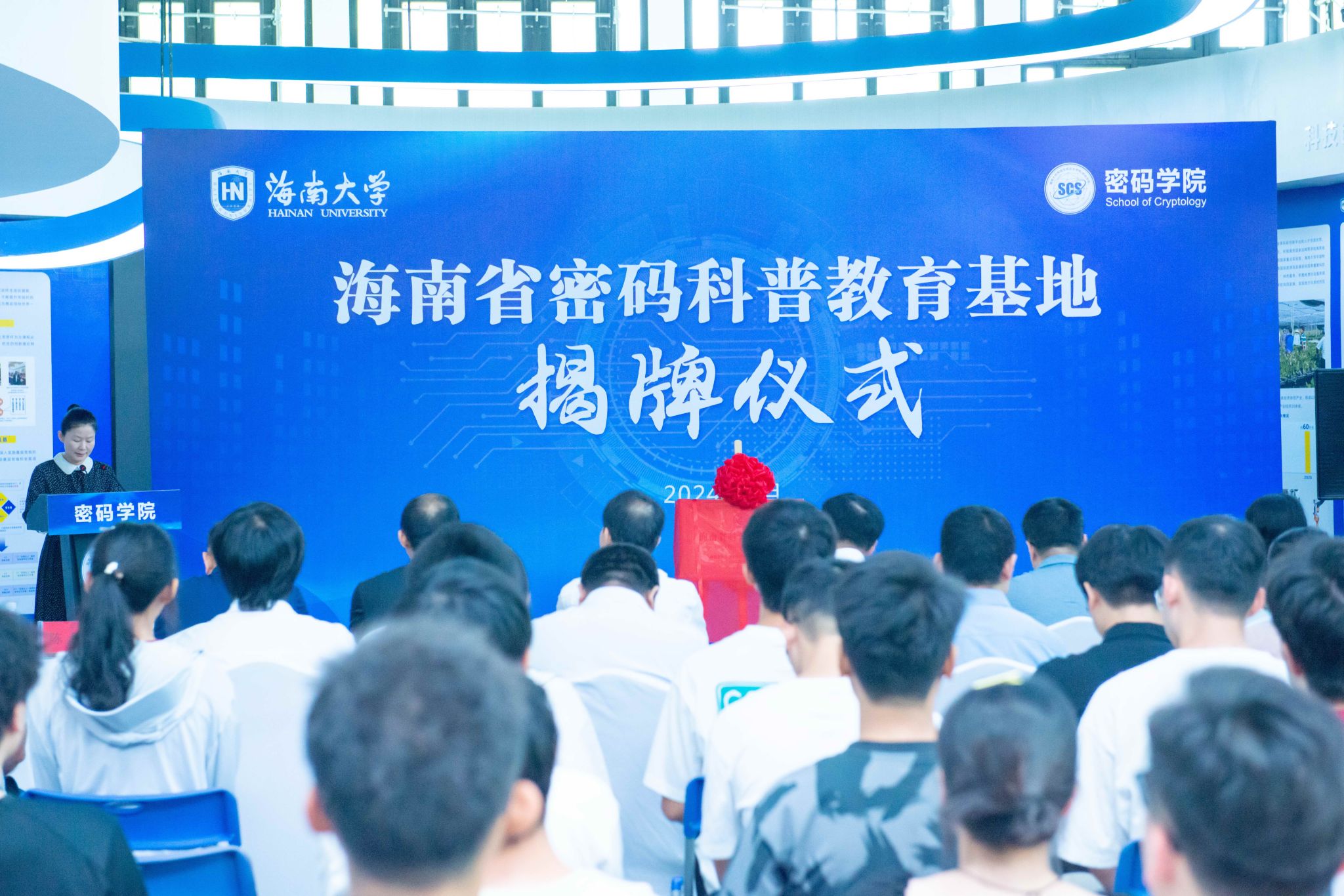 2024年6月6日,海南大学举行海南省密码科普教育基地揭牌仪式,海南省国家密码管理局局长蔡国杰、商用密码管理处处长陈川,海南省科学技术协会二级巡视员吴钟海、科普部副部长梁婧俏,海南省科学技术厅政策法规规划处副处长覃业敏,海南大学党委常委、副校长刘谦、科学技术发展院副院长陈伟、网1683168 3诸侯快讯入口(密码学院)党总支书记陈广锐等出席活动。