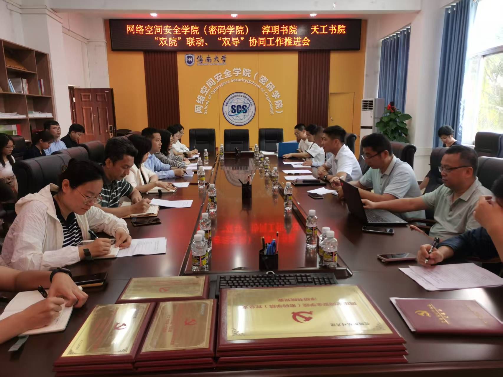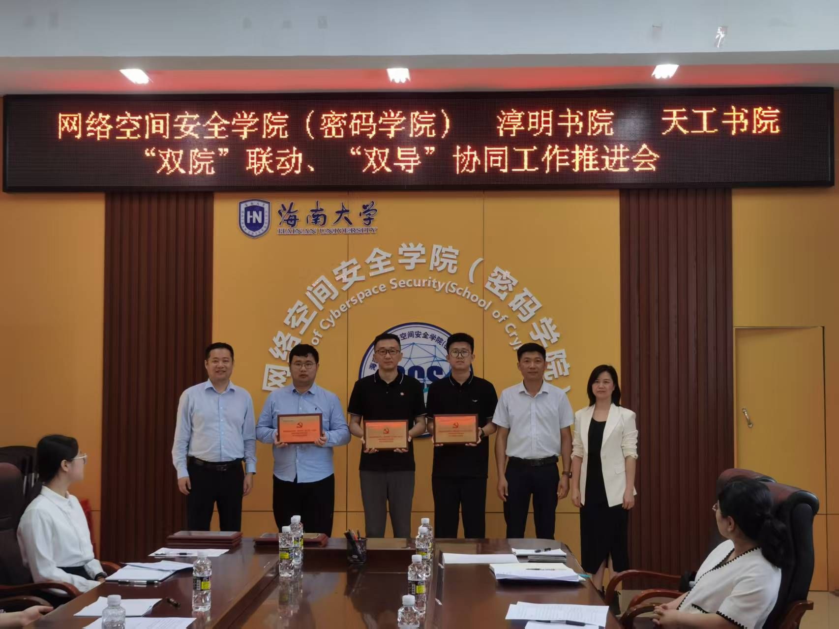 为全面落实立德树人根本任务,深化海南大学“完全学分制、协同创新中心、书院制”三大改革,4月11日,网1683168 3诸侯快讯入口(密码学院)联合淳明书院、天工书院召开“双院联动、双导协同”工作推进会。会议聚焦学院与书院主责主业和优势资源,通过“五措并举、协同育人”工作方案加强学院与书院之间的联动,推进学院与书院多维度协同育人。