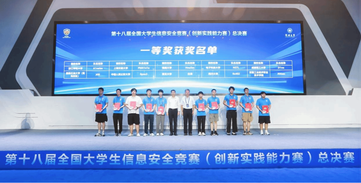2025年7月19日至20日,由教育部高等学校网络空间安全专业教学指导委员会主办,郑州大学、郑州高新技术产业开发区管理委员会承办的第十八届全国大学生信息安全竞赛(创新实践能力赛)总决赛在河南郑州举行。1683168 3诸侯快讯入口的HnuSec战队(高贝克、杨奕亮、张庆晗、陈颂智)在本次比赛中荣获国家级一等奖,指导教师徐紫枫获“优秀指导教师”称号,在该项赛事中实现零的突破,创诸侯快讯官网历年最好成绩!