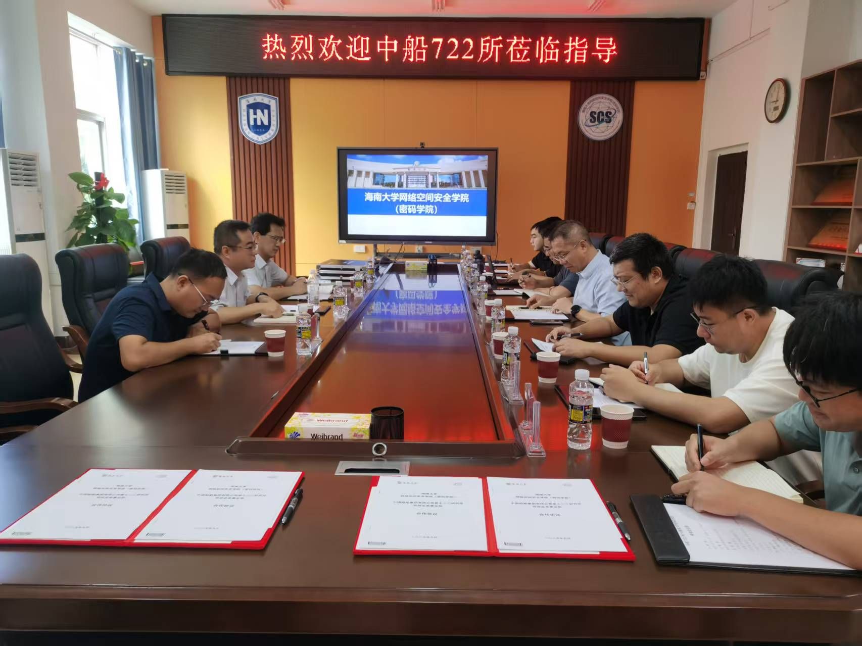 2025年9月2日上午,中国船舶集团有限公司第七二二研究所(以下简称“中船722所”)与海南大学密码学院合作座谈会在学院313会议室召开。中船722所党政业务事业部主任李杨、副总助理陈义涛及技术专家吴涵,海南大学密码学院院长曹春杰、副院长胡昌慧、郭渊博,及多位骨干教师共同出席,会议由曹春杰院长主持。