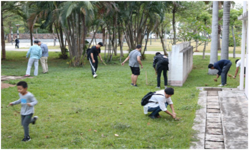 党员志愿者们分成三组,带着扫帚等各种工具以第二教学楼为中心开展清扫工作。参加人员对责任区内的杂物垃圾,灌木丛中的塑料袋、花坛中的杂草、纸屑等进行了细致的清理,对下水管道及草坪喷洒除虫剂,经过大家几个小时的清扫,有效改善了校园的环境卫生。